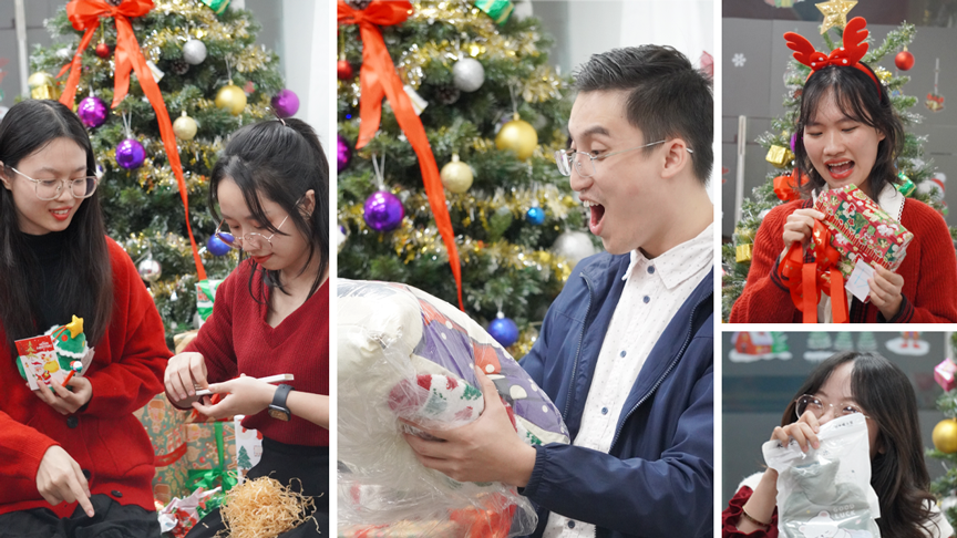 Tiếp nối chương trình là phần được trông ngóng nhất, đó là phần bốc quà. Những gói quà được bọc cẩn thận, xinh xắn đã được các bạn nhân viên tại WinEdu chuẩn bị với đầy tình cảm. Hơn lúc nào hết, sự phấn khích, vui vẻ, hào hứng được bộc lộ ra trên gương mặt các WinEdu-ers khi được ông già Noel trao tận tay những món quà.