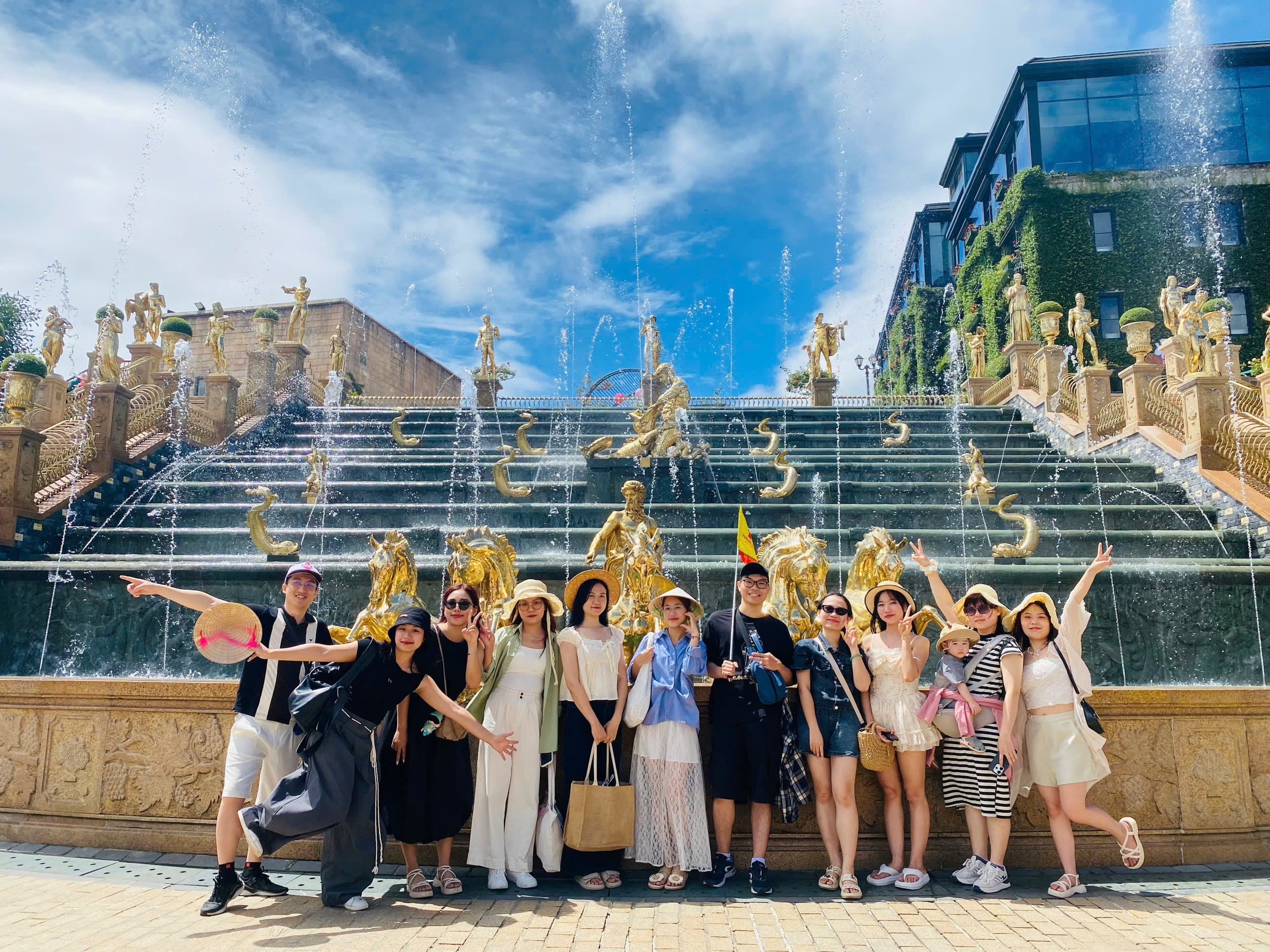 Chặng cuối cùng của chuyến đi là hành trình lên Bà Nà Hills – điểm đến nổi bật nhất Đà Nẵng. Tại đây, mọi người được trải nghiệm không khí se lạnh, chụp ảnh tại Cầu Vàng nổi tiếng, khám phá Làng Pháp cổ kính, và đặc biệt là tham gia hàng loạt trò chơi tại Fantasy Park.